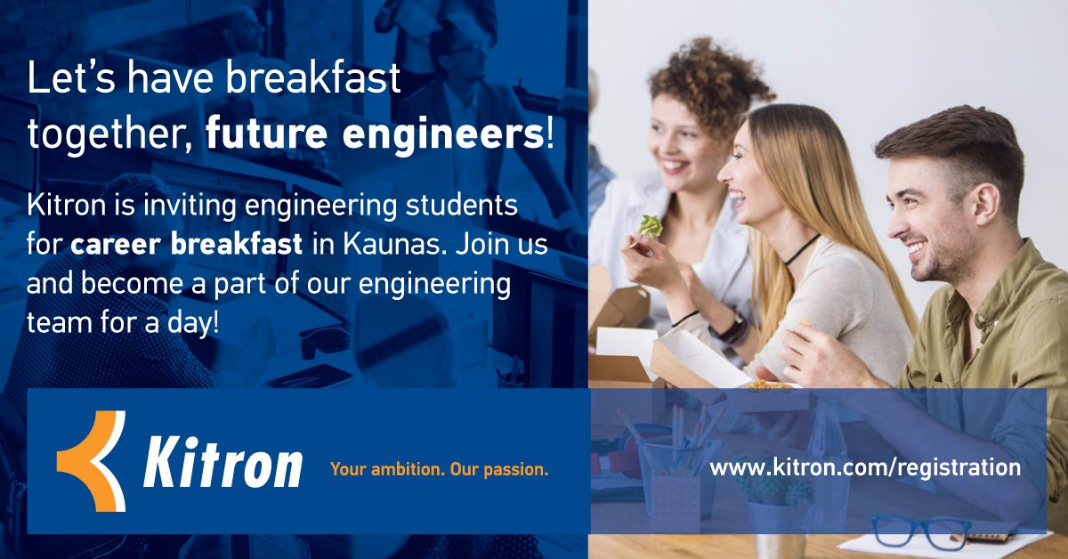 Gruodžios 5 d. 10 val. KITRON kviečia inžinerinių studijų studentus susitikti jau tradicija tampančiame renginyje „Inžinierių karjeros pusryčiai”! Renginio metu studentai turės galimybę tapti inžinierių komandos dalimi, dalyvauti diskusijose, susipažinti su KITRON gamykla bei spręsti įdomias inžinerines užduotis! Kviečiame ugdyti savo žinias kartu su mumis, ateities inžinieriai! Renginiui būtina išankstinė registracija.